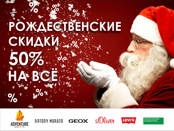 Бутики New Millennium, New Millennium Sport, New Millennium Kids и магазины Adventure, Antony Morato, Benetton, Geox, Levi's, Mango и s.Oliver приглашают на Грандиозную Рождественскую распродажу.