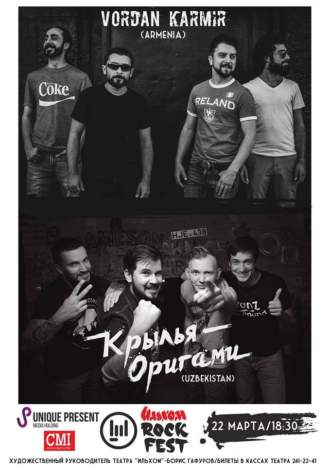 На сцене Театра "Ильхом" пройдет концерт одной из самых известных рок-групп Армении — Vordan Karmir. Также в этот день выступит ташкентская группа "Крылья Оригами".