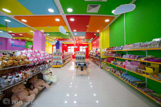 Магазин занимает большое пространство в торговом ряду одной из новых многоэтажек. В красочно оформленном помещении представлены товары для детей ведущих марок, таких как Brevi, Quinny и других. Это коляски, автокресла, манежи, ванночки и, конечно же, товары для безопасности — стоперы, заглушки, силиконовые накладки на углы и многое другое.