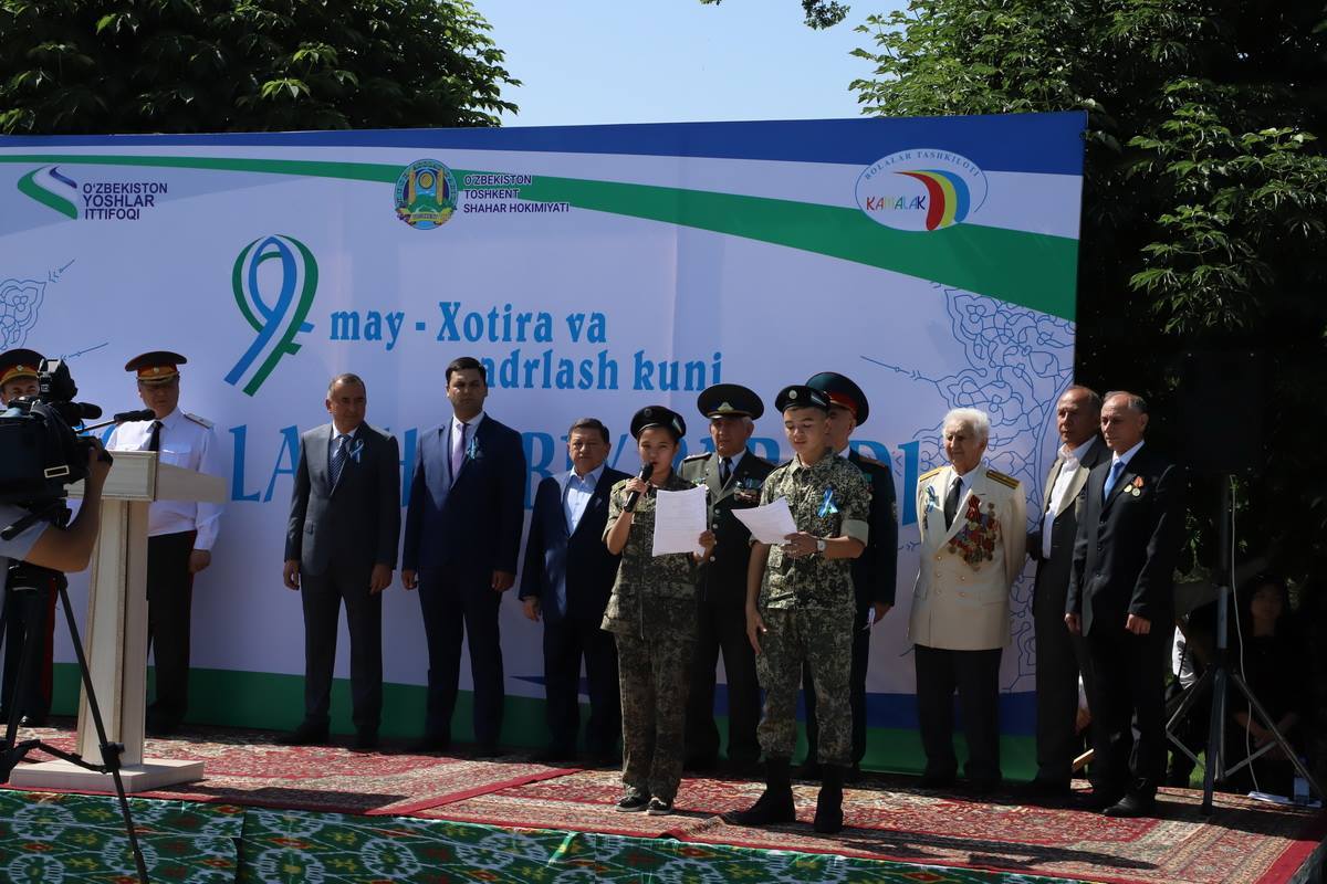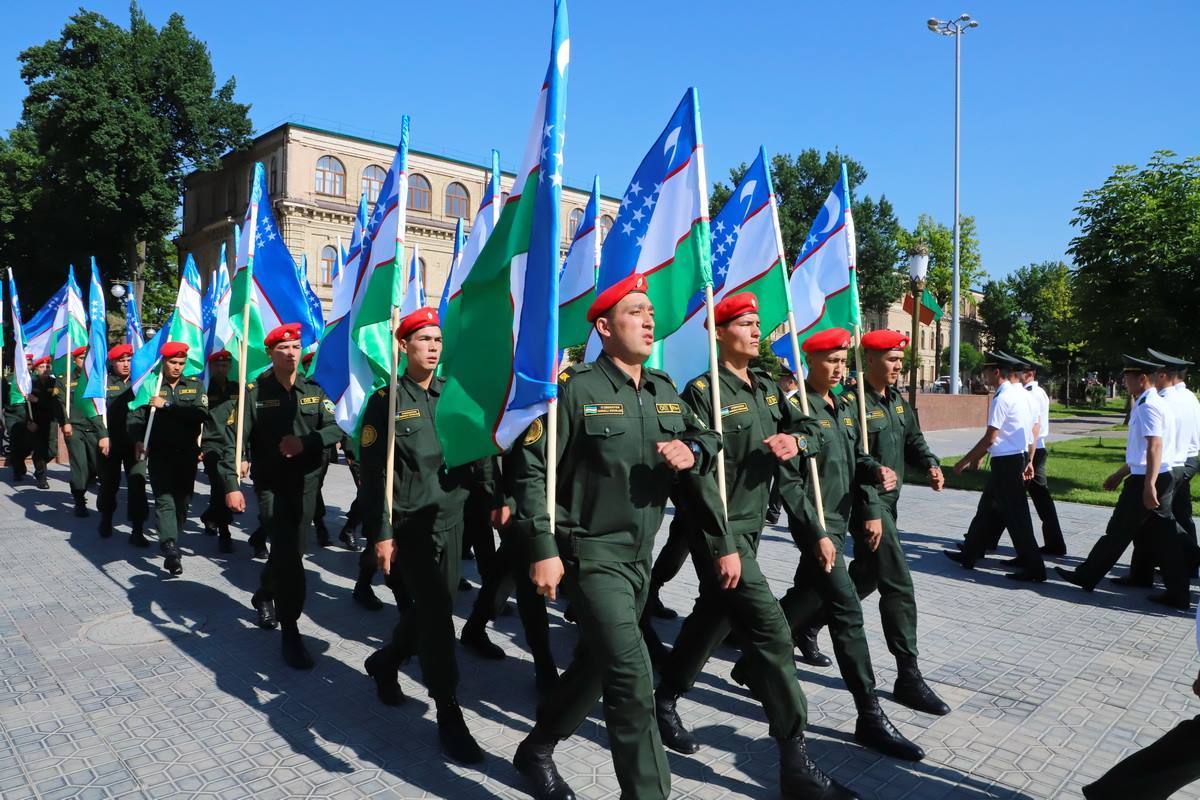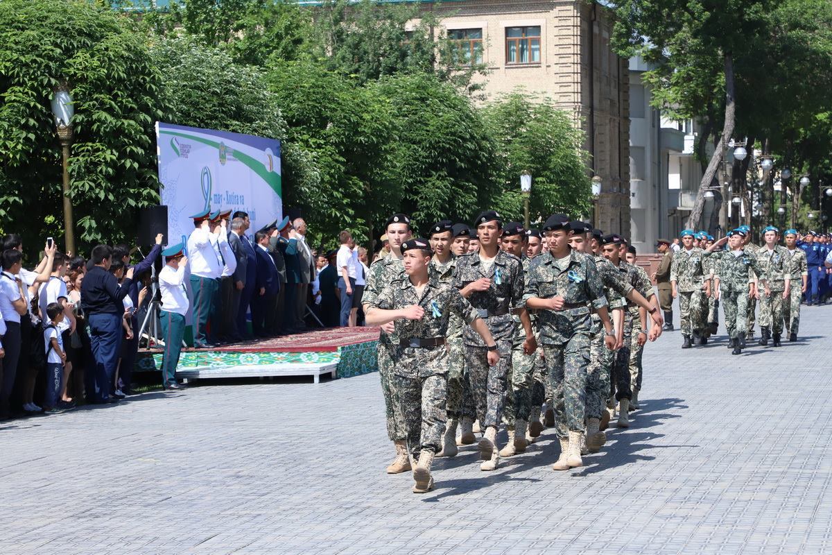 5 мая на сквере Амира Темура прошел Детский военный парад. В нем участвовали молодые воспитанники учебных заведений с военным уклоном.