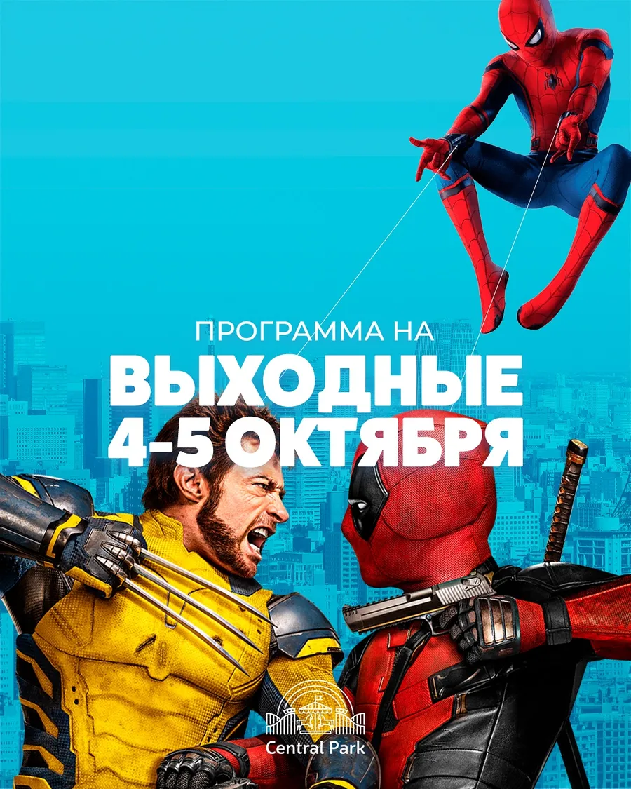 - 19:00 — аниматорское шоу «Дэдпул, Росомаха и Человек-паук».