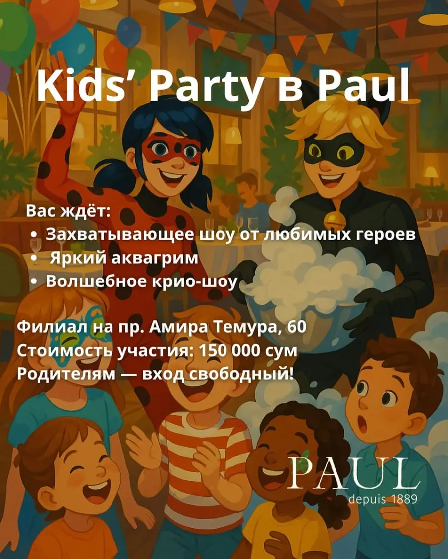 Кафе Paul приглашает на детскую вечеринку Kids Party.