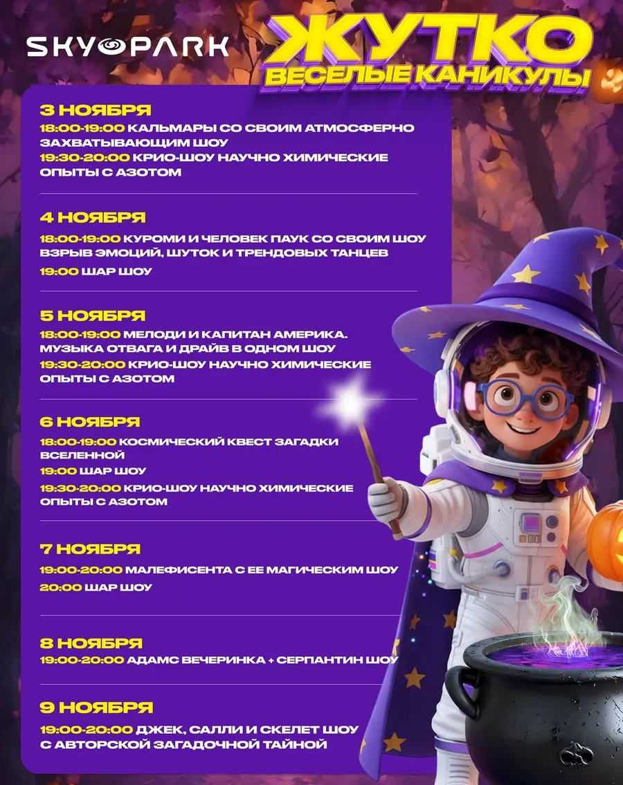Sky Park приглашает детей и родителей провести осенние каникулы на праздничные шоу-программы.