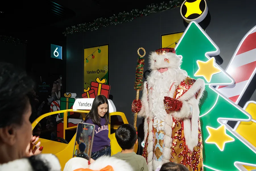 Гостей ждала особая программа: отдельная зона для партнёров Yandex Pro, подарки для детей от Деда Мороза — наборы со сладостями и книгами, а также просмотр популярных новогодних фильмов: «Чебурашка», «Буратино» и «Губка Боб».