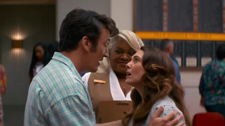 Эта дилемма укладывается в хорошо знакомую жанровую форму — классическую комедию о повторном браке и аккуратно переодетую в фантазию о загробной жизни. Даже актеры словно подыгрывают ощущению ретро: Теллер здесь намеренно простоват, Тёрнер — почти карикатурная звезда, а Олсен балансирует между легкой кокетливостью и искренней растерянностью, играя женщину, которая любит обоих и потому не может выбрать никого без чувства вины.