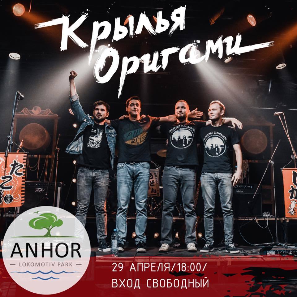 29 апреля на главной сцене парка Anhor Lokomotiv состоится живое выступление популярной столичной рок-группы "Крылья Оригами". В программе лучшие авторские композиции команды.