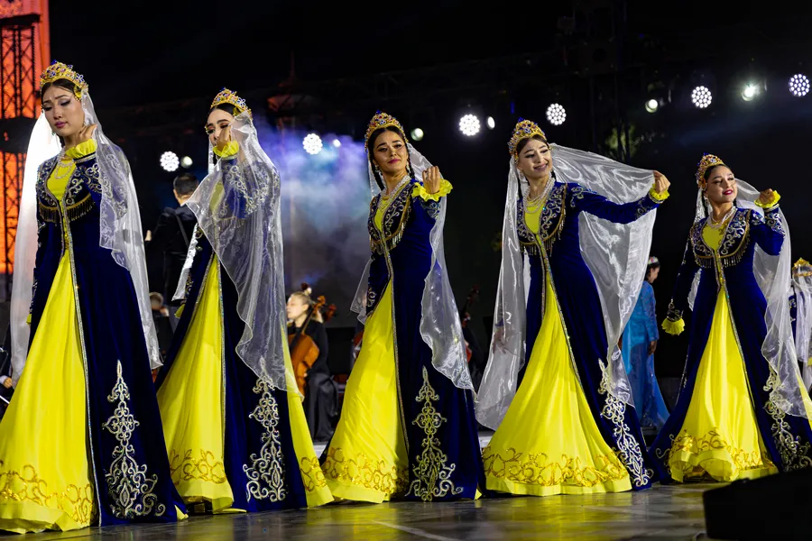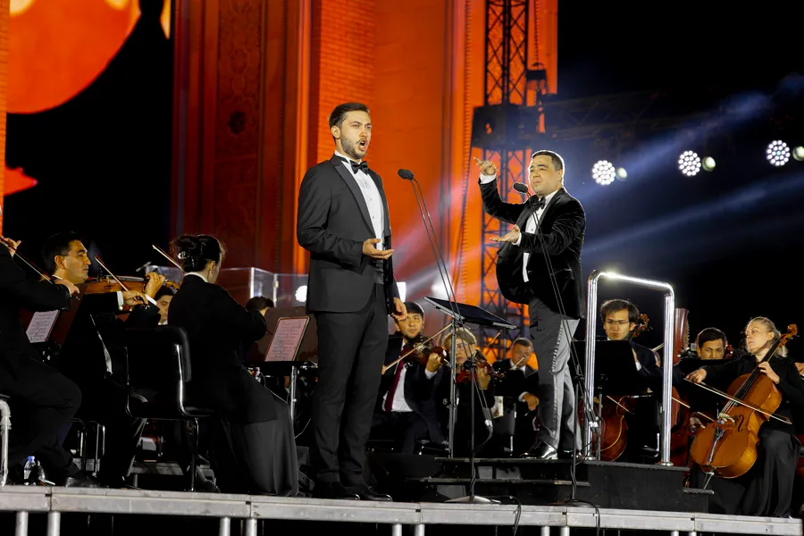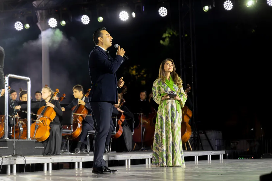 Симфонический оркестр Узбекистана под управлением Камолиддина Уринбаева сопровождал концерт от первой до последней композиции, превращая каждое выступление в отдельную историю. На сцене также выступили ансамбль макома имени Юнуса Раджаби и Государственный ансамбль танца «Тумор». Под песню Женисбека Пиязова зрители увидели элегантный бальный дуэт Андрея Кузнецова и Ли Мины, а выступление Севары Назархан сопровождалось живописными полотнами Народного художника Узбекистана Бабура Исмаилова. Финалом стали зажигательные танцы лязги, которые подняли зал на ноги.