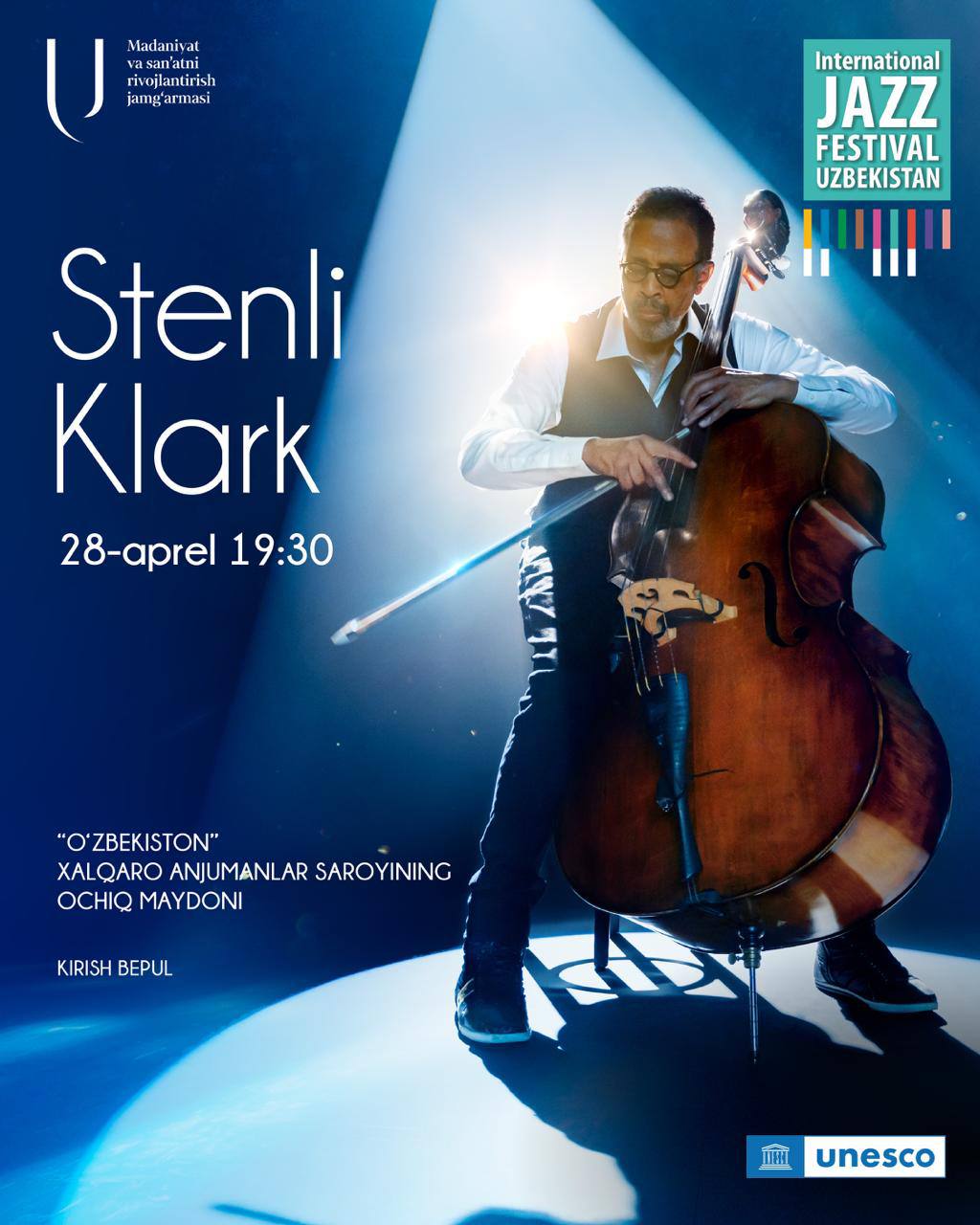На открытой площадке Дворца международных форумов состоится Церемония открытия Ташкентского международного джазового фестиваля и концерт легенды джаза Стэнли Кларка.