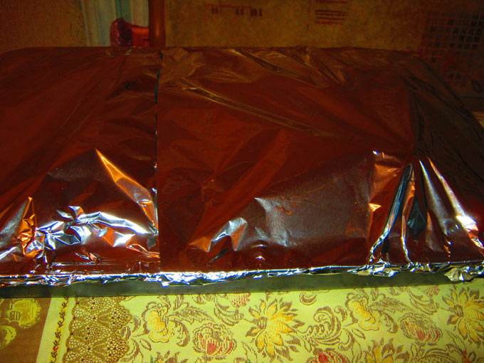 - Плотно закрываем форму фольгой и ставим в разогретую до 180 градусов духовку на 25 минут.
