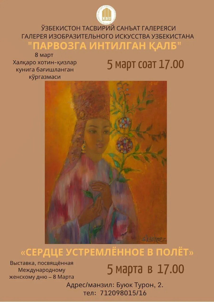 В Галерее изобразительного искусства Узбекистана откроется выставка «Сердце, устремленное в полет», посвященная Международному женскому дню.