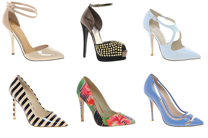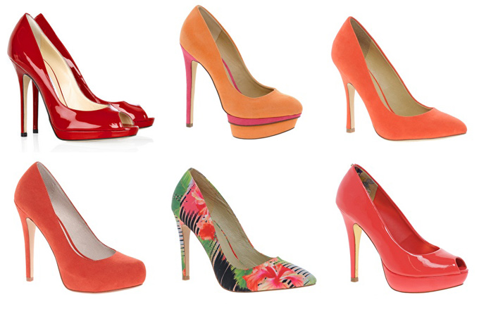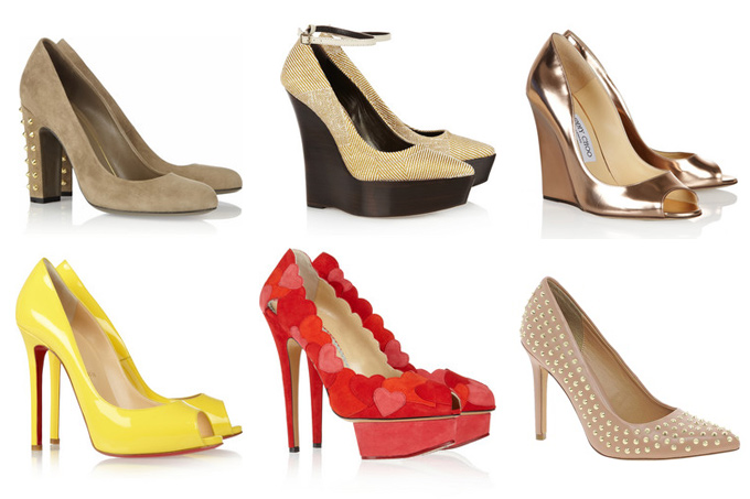 Туфли и сумочка — уже давно не должны идти в тандеме. Они не обязаны гармонировать по цвету. В моде остроносые лодочки на шпильке, обувь на устойчивом каблуке, танкетка и туфли с открытым носиком. Цветовая гамма — зависит от вашего платья. Если платье выигрывает за счет принта, стоит отдать предпочтение черным или бежевым туфлям. Также можно поэкспериментировать с яркими однотонными туфлями. Если же ваше платье монохромное, то в этом случае можно надеть на ноги что-то броское, например, обувь в стиле color block, или туфли декорированные брошью, стразами, шипами, заклепками, рисунками или вышивкой.