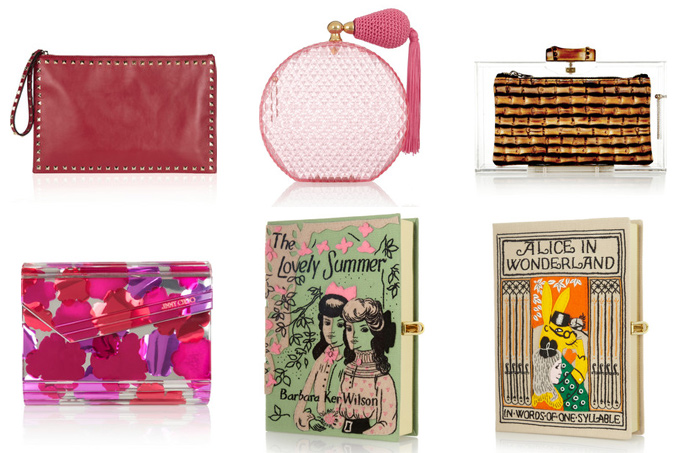 Клатчи — это отдельная тема. Однако и здесь можно вкратце выделить основные тренды. В моде сумочки необычных форм и текстур. Например, с легкой подачи дизайнеров, стали актуальные прозрачные клатчи и сумочки в форме книг, фруктов и даже парфюмерных флаконов. Также не теряют популярности клатчи-конверты и, конечно же, стеганые варианты на цепочке.