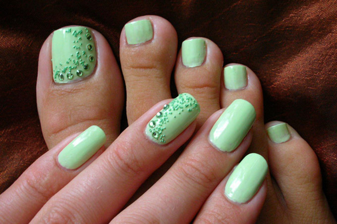 Для любительниц быть идеальной до кончиков ногтей, можно довольствоваться не только маникюром, но и педикюром. Самым актуальным выбором для педикюра в новогоднюю ночь станут темно-синие, сливовые, фиолетовые и глубокие бардовые ногти.