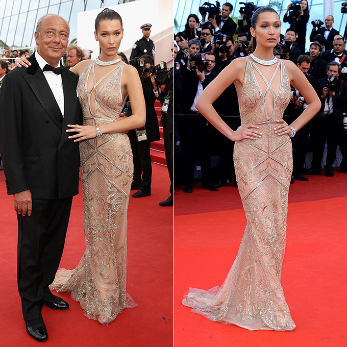 Сестра Джиджи Хадид, топ-модель Белла эффектно позировала в элегантном платье от Roberto Cavalli.