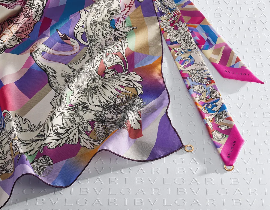 Также Bvlgari представляет капсульную коллекцию текстиля, эксклюзивную для Года Змеи. В основе навевающего воспоминания дизайна две соединившиеся змеи, которые образуют дополняющие друг друга половинки символического сердца в окружении огней фейерверка. Коллекция включает в себя изысканный шелковый шарф в цветах Royal Ruby, черном и водянисто-зеленом, универсальный шелли в цветах Royal Ruby, черном и натуральном.