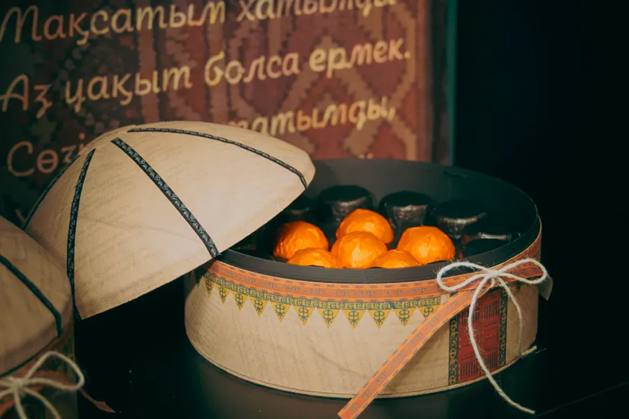 Их форма выбрана не случайно: юрта объединяет два народа, а орнаменты на каждой коробке соединяют казахские и узбекские мотивы в едином узоре.