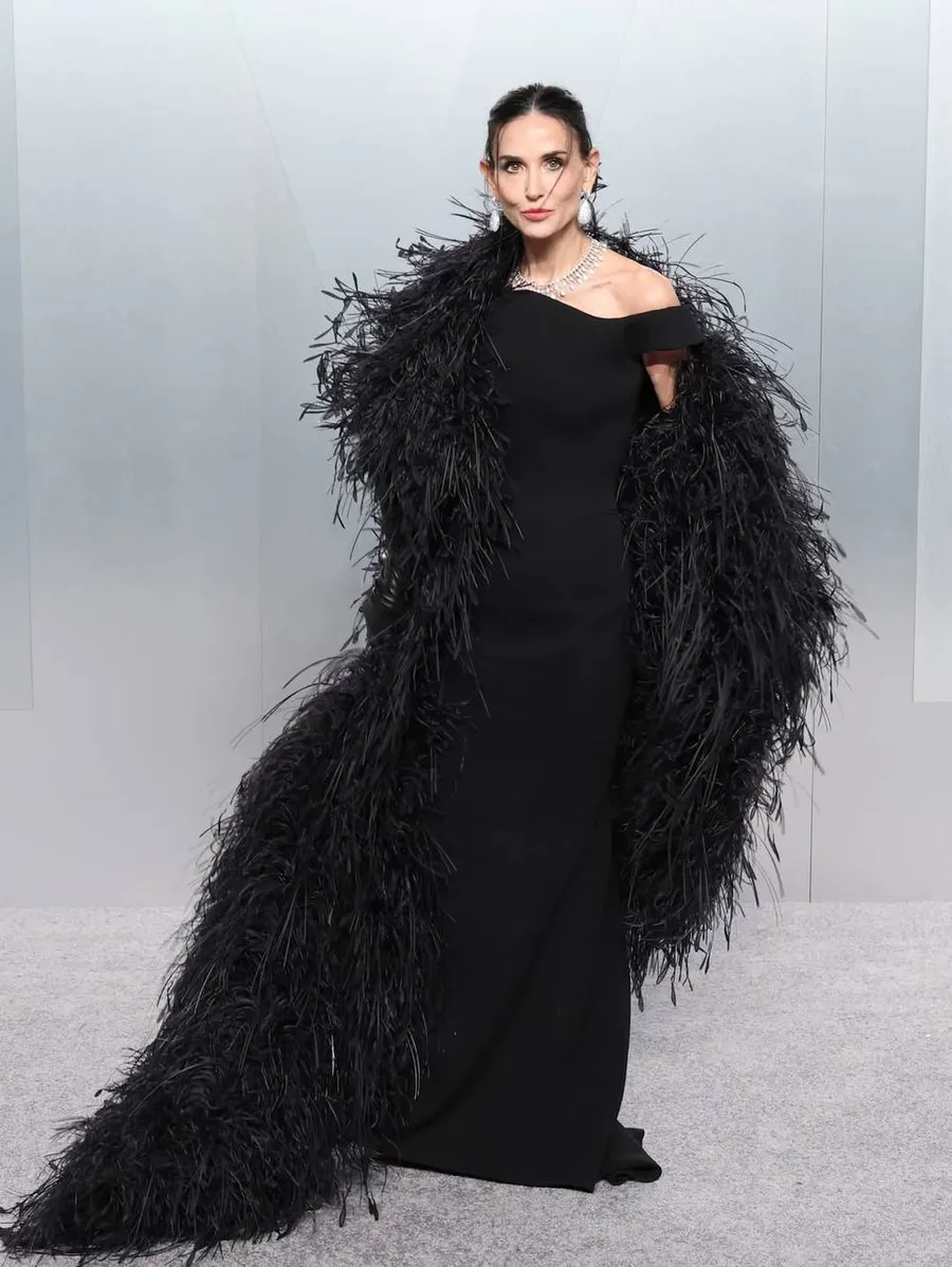 Деми Мур снова надела перья, и снова черного цвета. На этот раз образ принадлежал Balenciaga.