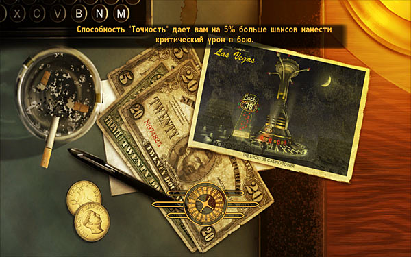 Традиционное для ролевых игр начало, когда вы просыпаетесь и не помните что произошло, сотрудники Obsidian обошли стороной и сразу убили главного героя. Было бы интересно начинать, если пришлось бы откапывать себя самого из под земли, но проще проснуться у врача, с чего мы и начнём. Это даёт повод настроить нового персонажа по знаменитой системе S.P.E.C.I.A.L. Добрый доктор будет задавать вам непонятные вопросы и показывать неприличные картинки, чтобы оценить масштаб ущерба головы. На основании этого теста вы сформируете своего первого героя. Такого же страшного, как и в прошлый раз, потому что движок New Vegas — древний старец Gamebryo, на котором были сделаны TES 4: Oblivion, Ragnarok Online 2 и Sid Meier's Railroads!