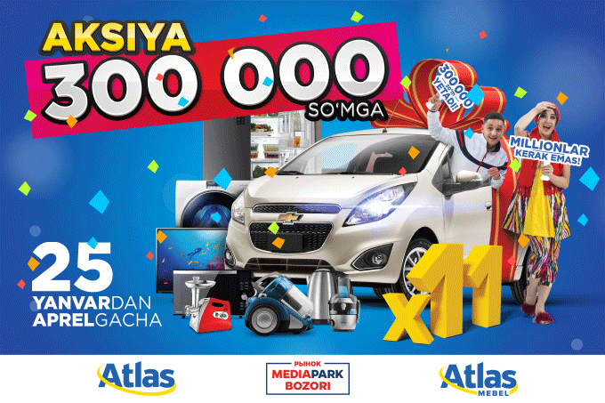 За каждые 300 000 сумов можно получить один купон участника. Чем больше купонов, тем выше шансы выиграть авто и ценные призы.