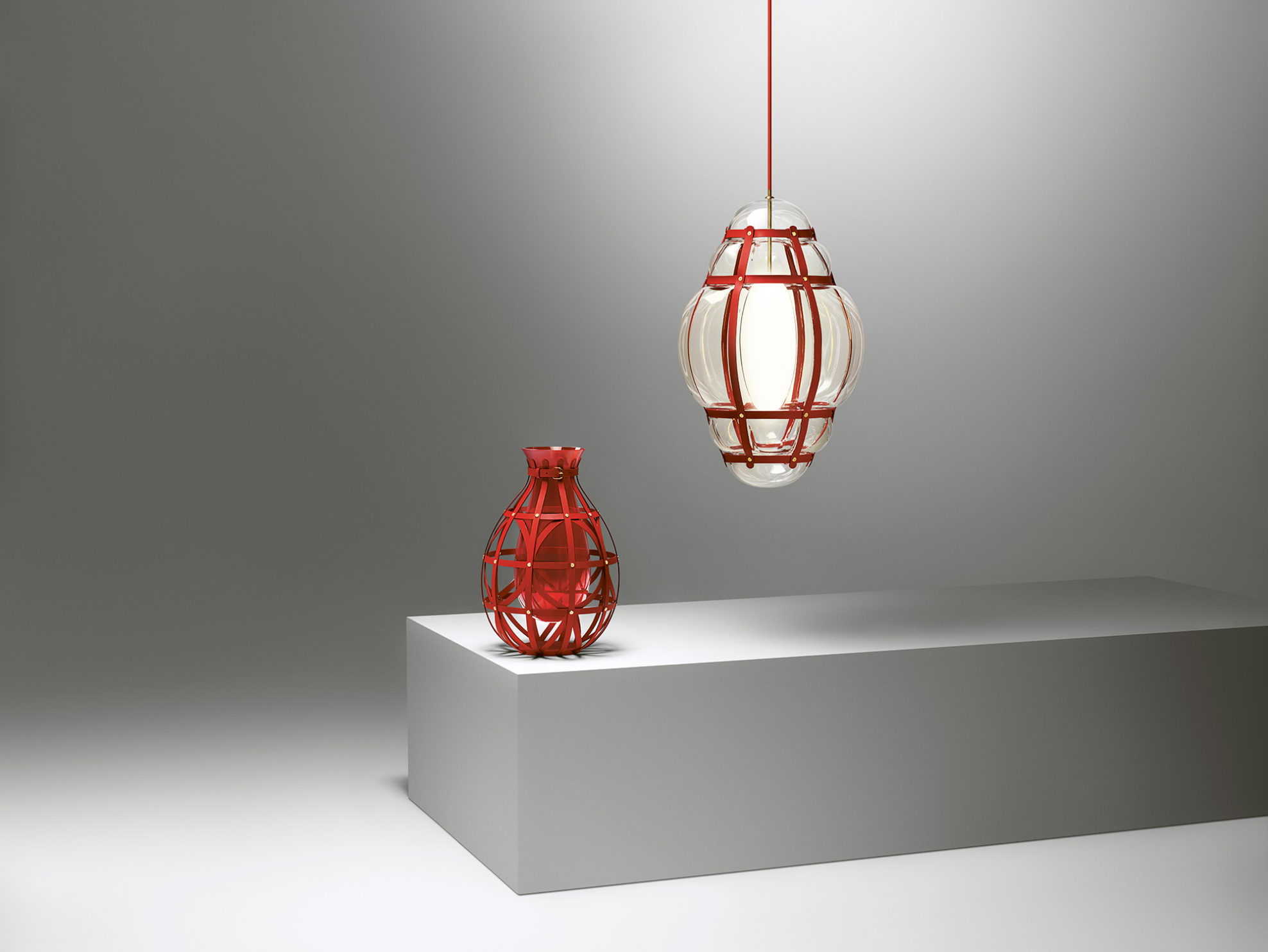 Четыре новинки: сет Diamond из кресла и дивана в соблазнительно-красном цвете, вдохновленную традиционными венецианскими фонарями лампу Venezia и вазу Diamond из красного стекла, подвешенную на фирменных кожаных ремешках бренда, представил Марсель Вандерс.