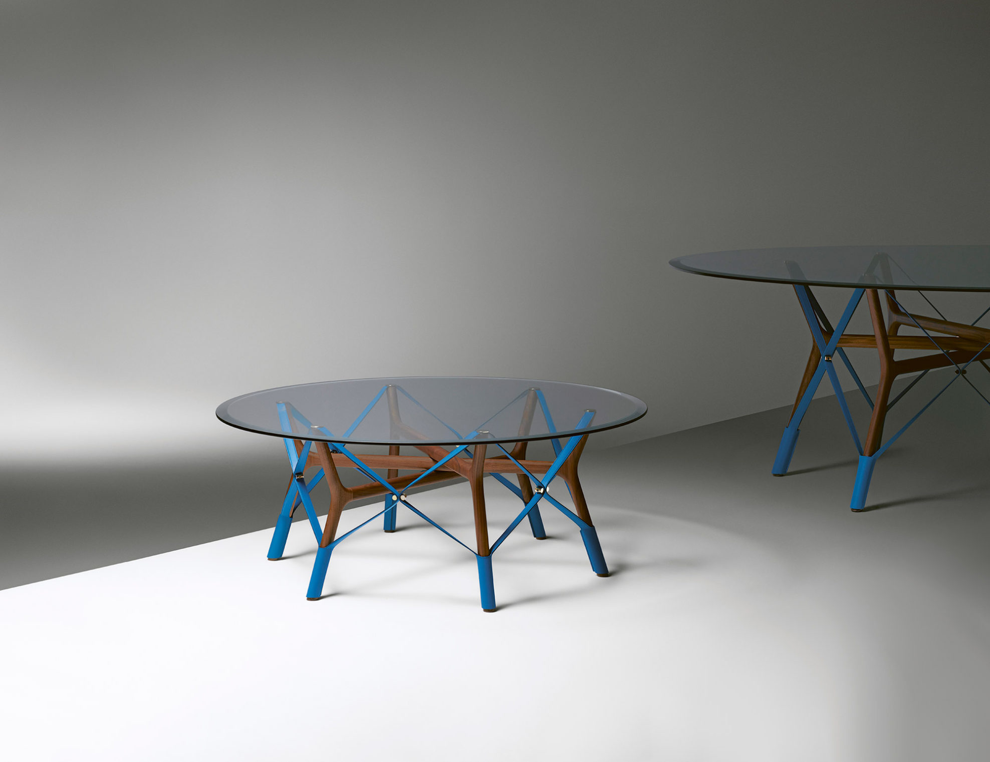 При создании стола Serpentine швейцарская студия Atelier Oï вдохновлялась танцевальными движениями: вокруг шести ножек плавно переплетаются тонкие кожаные ремни. Serpentine доступен в двух вариантах: большой обеденный стол и низкий журнальный.
