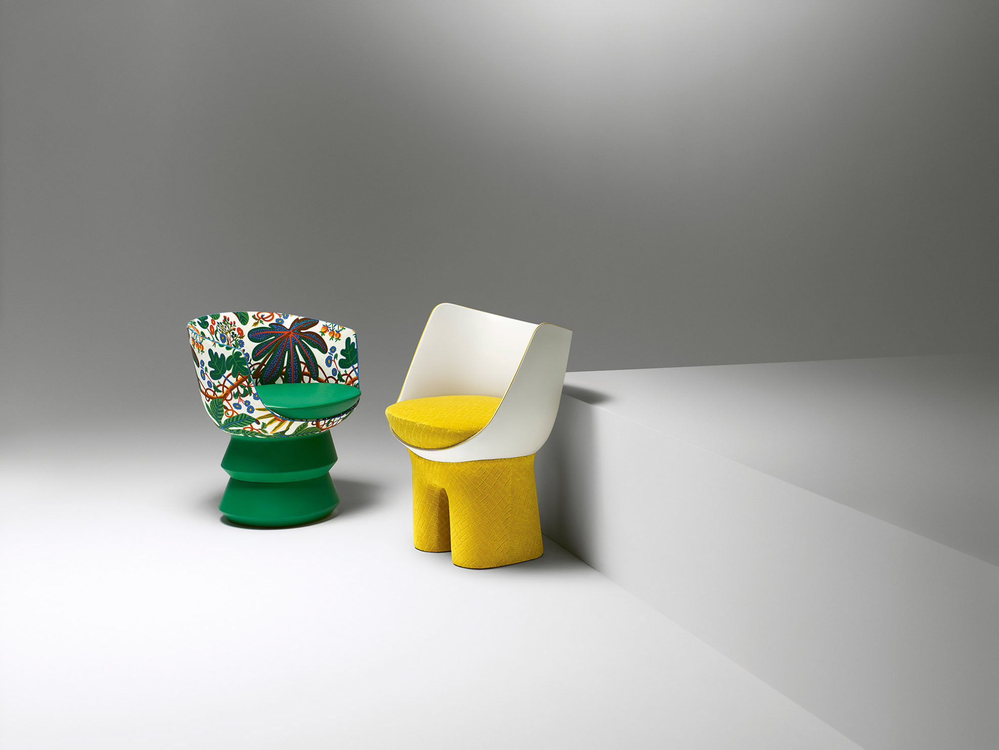 А Raw Edges создали для бренда яркую пару стульев Dolls, которые покупатели смогут кастомизировать по своему желанию.