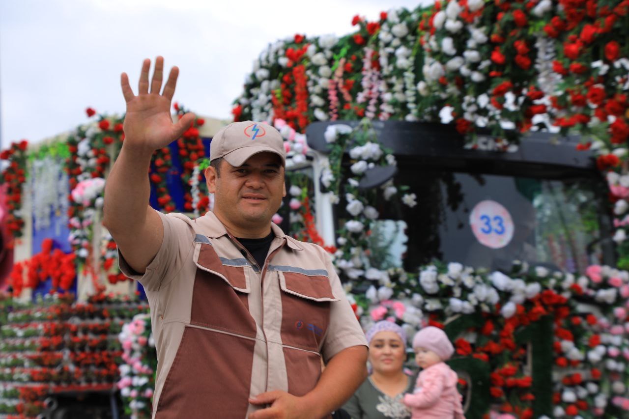 Праздник начался с автомобильного парада, где более 200 транспортных средств, автомобилей и мотоциклов, украшенных цветами в виде орнаментов, проехались по улицам Намангана.