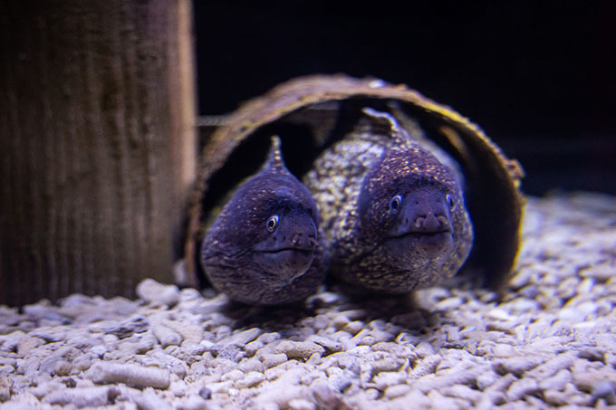 Здесь представлено более сотни видов экзотических рыб потрясающей и невероятной красоты, таких как кашмирский луциан, мурена, хирург бариена, желтомасковый ангел, зебровидный дасцилл, зеленый хромис, атлантический пагель, каменный окунь-зебра, лисица желтая, хромис, аргус пятнистый, а также различные разновидности скатов, акул, крабов, омаров и даже осьминог.