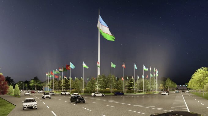 Возле международного аэропорта Ташкента на съезде с путепровода в центре круга установлен флаг Узбекистана. В хокимияте столицы сообщили, что высота флагштока составляет 62 метра, а размер полотна флага — 12×24 метра.