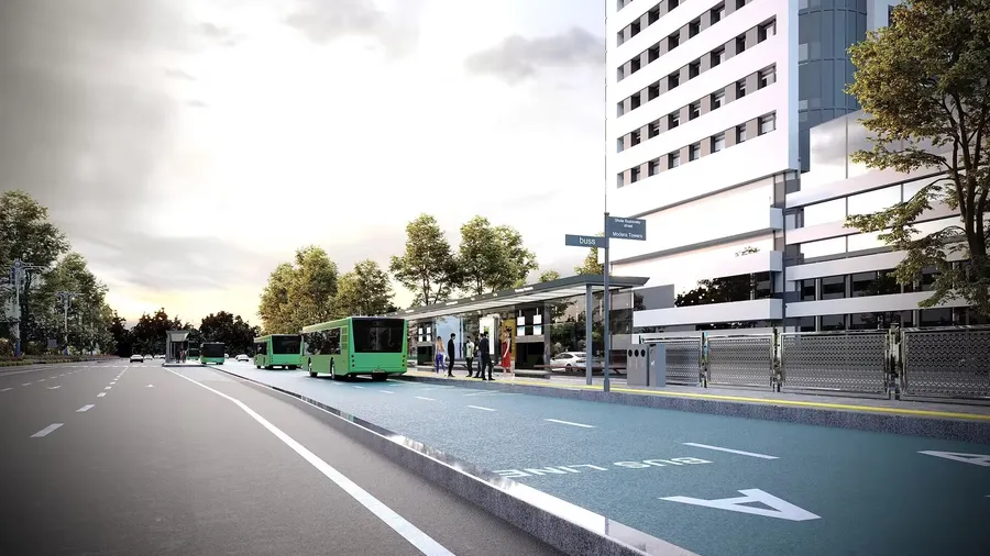 - автобусы будут двигаться по центральной полосе, оборудованной специальными платформами для посадки и высадки;