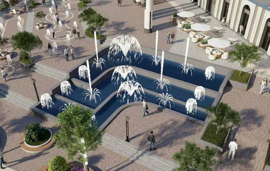 - на площади перед рынком создадут два фонтана — сухой и классический.