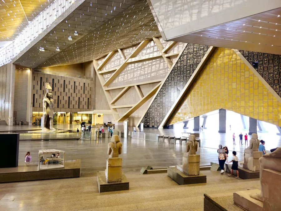 Новый Большой Египетский музей (Grand Egyptian Museum), расположенный у подножия пирамид Гизы, стал одним из самых масштабных культурных проектов современности. Пространство площадью 24 000 квадратных метров включает постоянную экспозицию, детский музей, конференц- и образовательные центры, коммерческую зону и крупнейший в регионе центр по консервации древностей.
