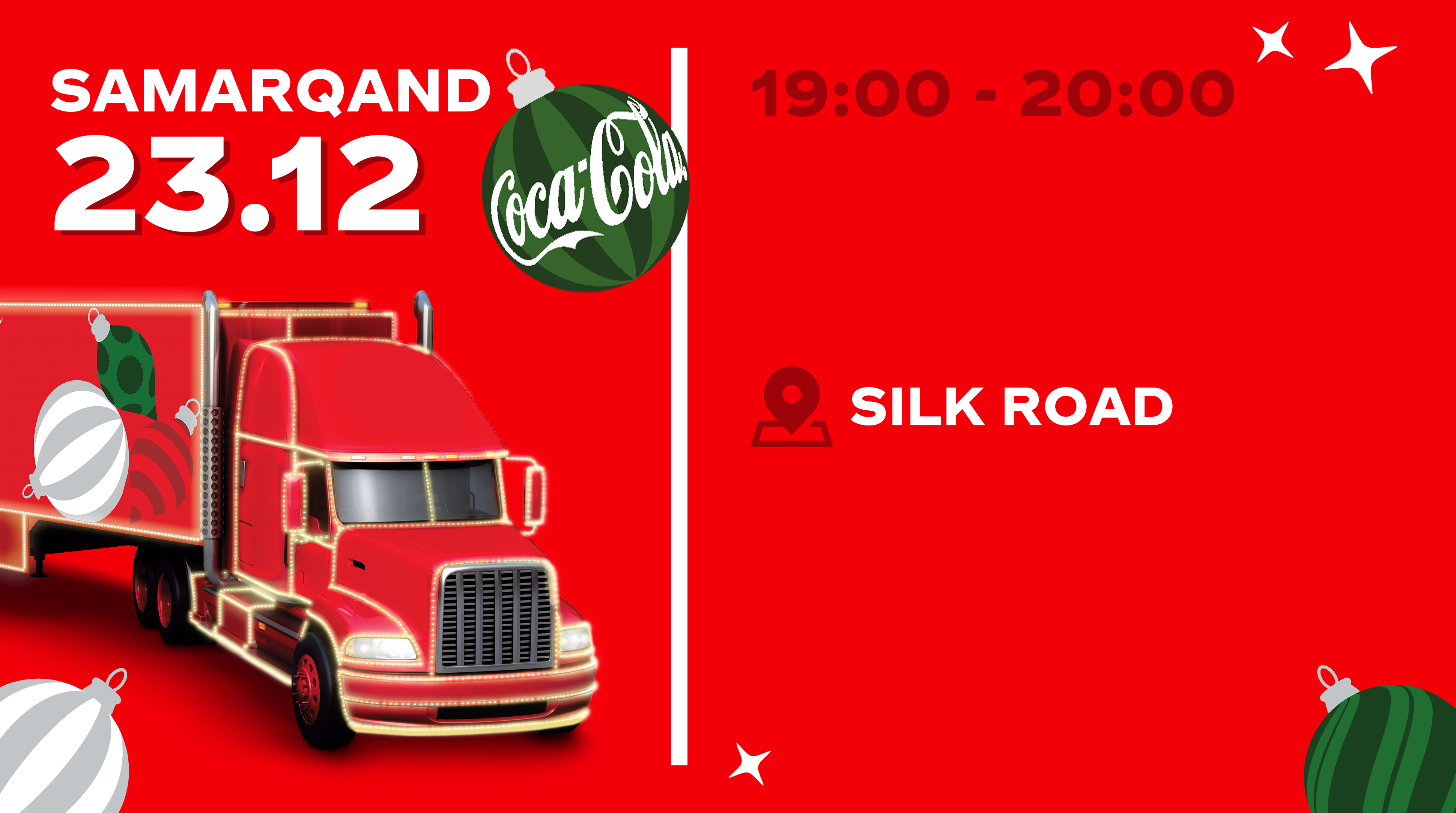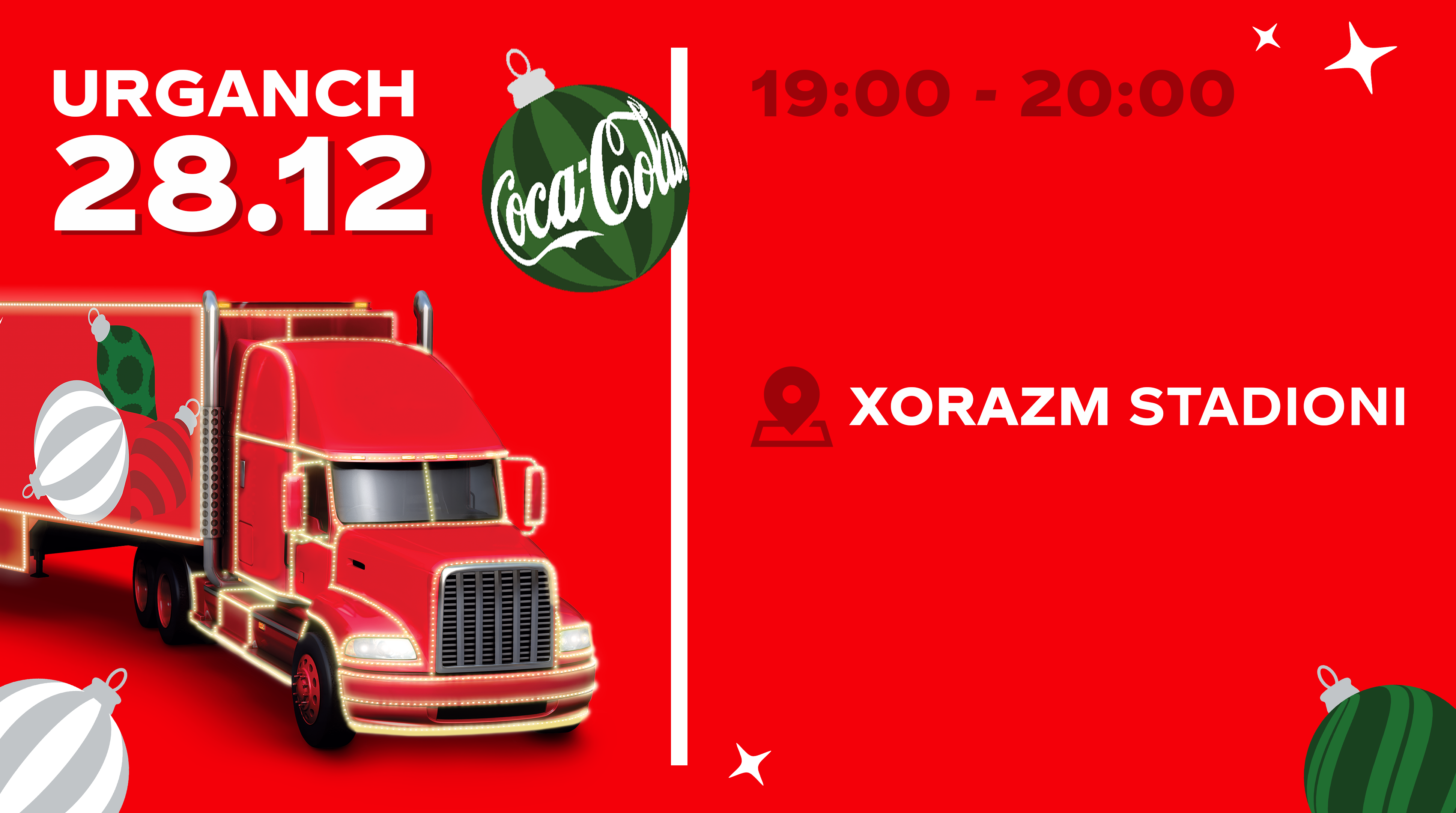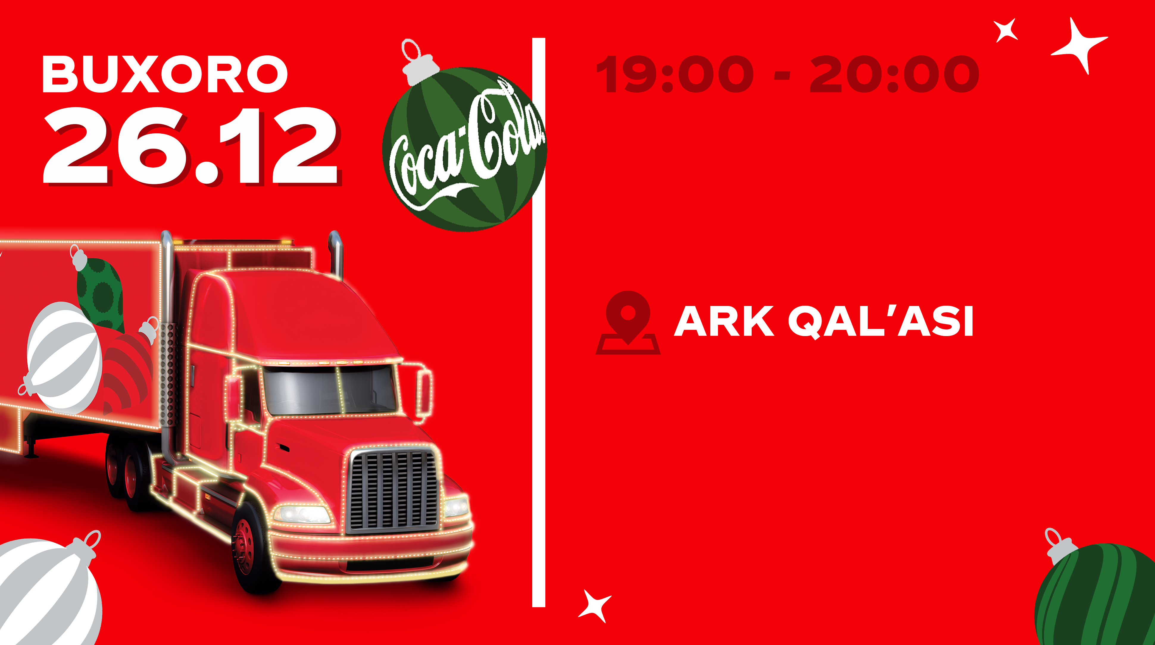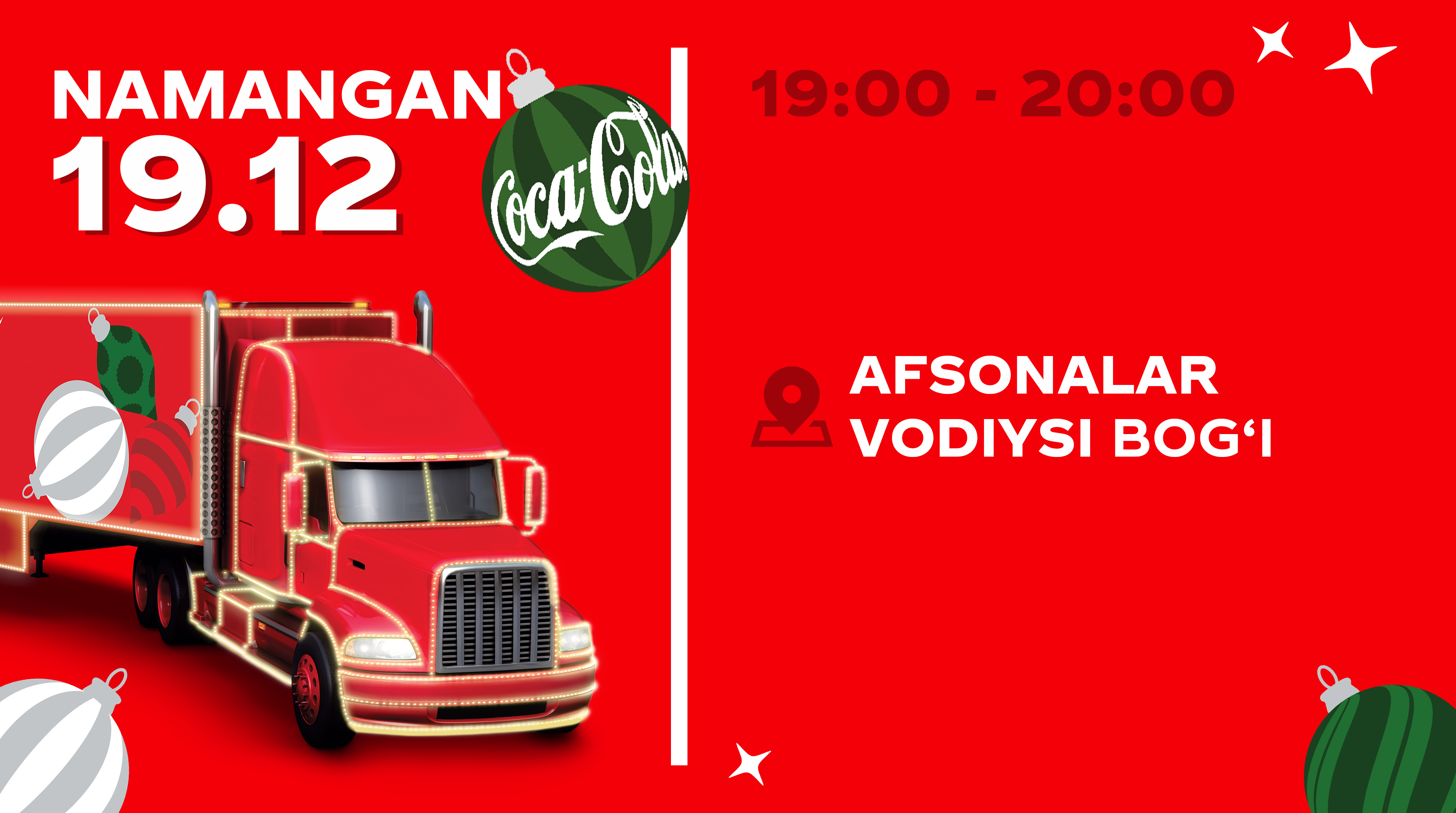 Начиная с 19 декабря, по городам Узбекистана отправится новогодний автопробег грузовиков Coca-Cola. Его можно будет увидеть в нескольких городах Узбекистана — Намангане, Андижане, Фергане, Самарканде, Карши, Термезе, Бухаре, Хиве, Ургенче и Нукусе.