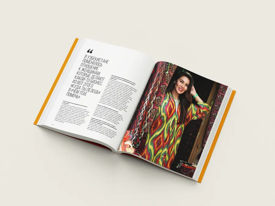 «Они создают Узбекистан» — это книга-альбом в формате интервью. В ней рассказывается о людях, формирующих современный облик и культурный код Узбекистана. Предприниматели, деятели культуры, искусства, образования и медиа делятся своими историями, семейными традициями и закулисьем ремесла.