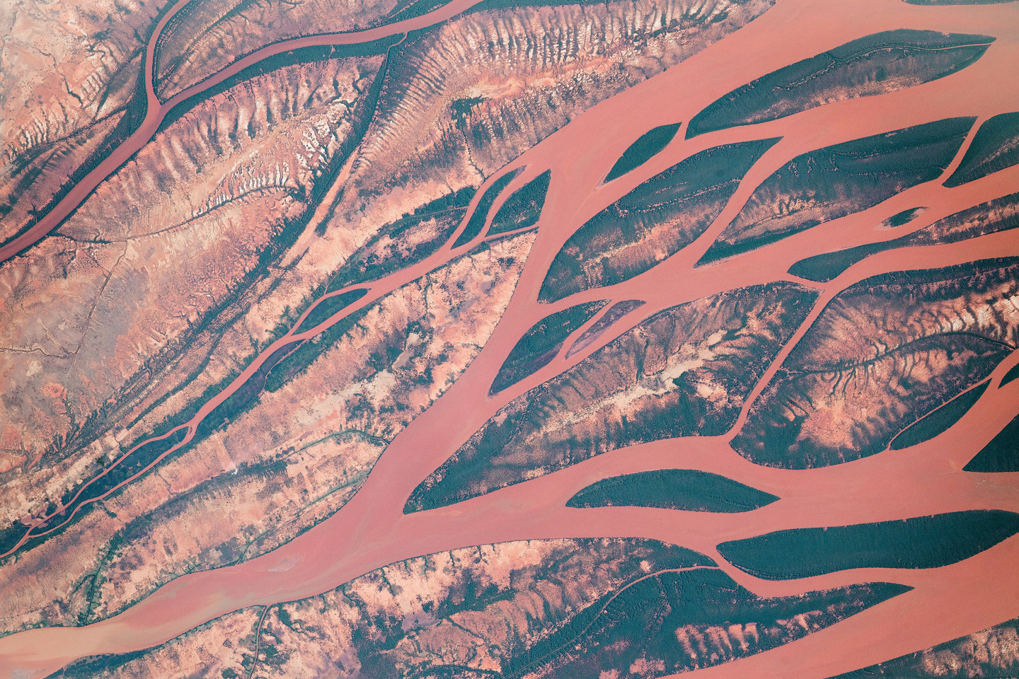 Каналы в дельте реки Бецибока на Мадагаскаре несут свои воды из горных районов острова в залив Бомбетока и Мозамбикский пролив. Снимок сделан 29 июня 2018 года в ходе 56-й экспедиции на МКС.