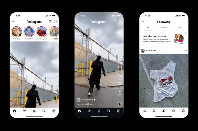 Изменения коснулись и навигации: кнопка сообщений перенесена в центр нижней панели, а рядом с Reels появилась вкладка Following. В ней можно выбрать один из трех форматов просмотра: