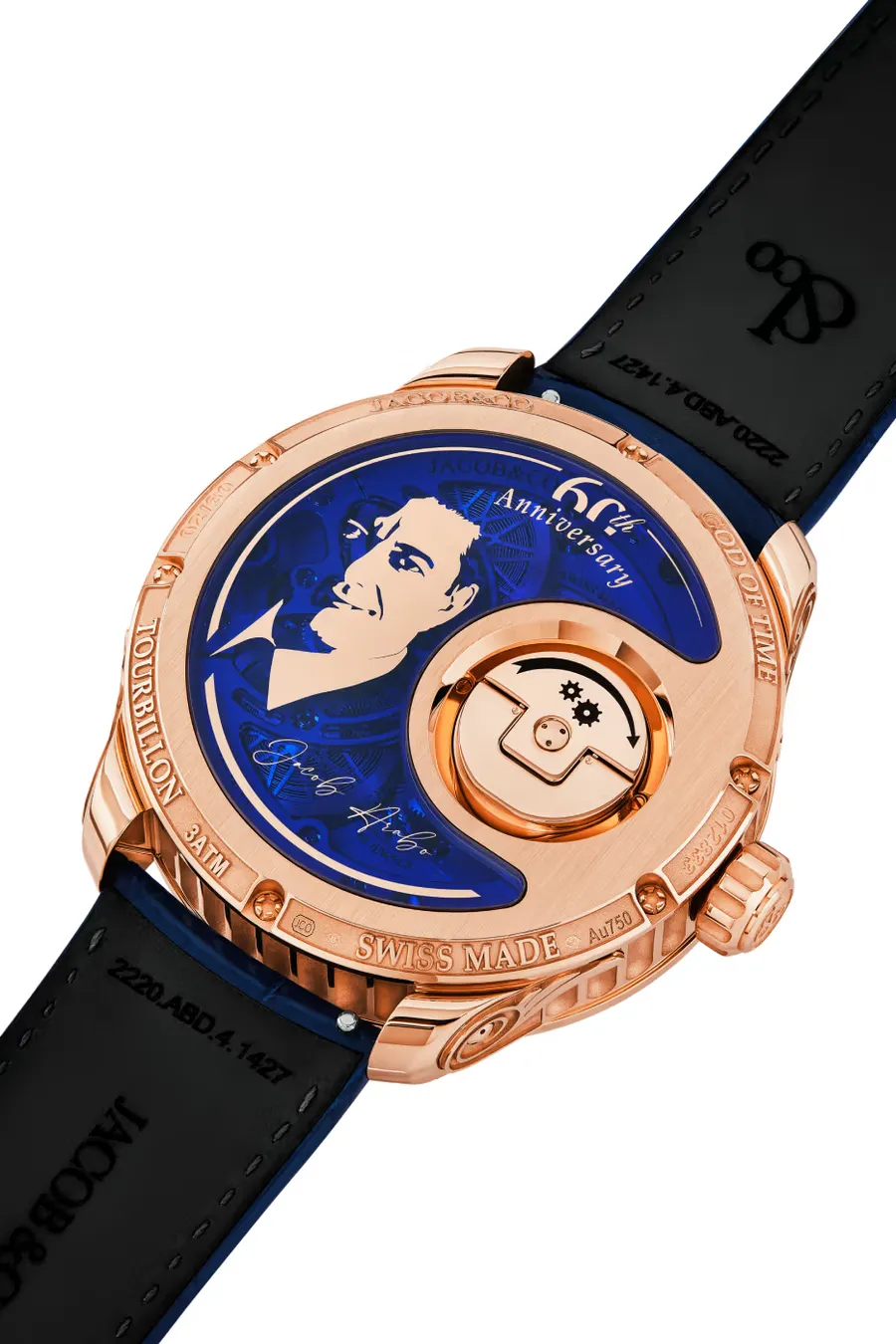 Новинка приурочена к 60-летию основателя бренда Джейкоба Арабо и выпущена ограниченным тиражом всего в 60 экземпляров. В основе часов — новый калибр JCAM60 с ручным заводом, титановой кареткой весом 0,27 грамма и системой постоянной силы, обеспечивающей стабильную работу механизма.