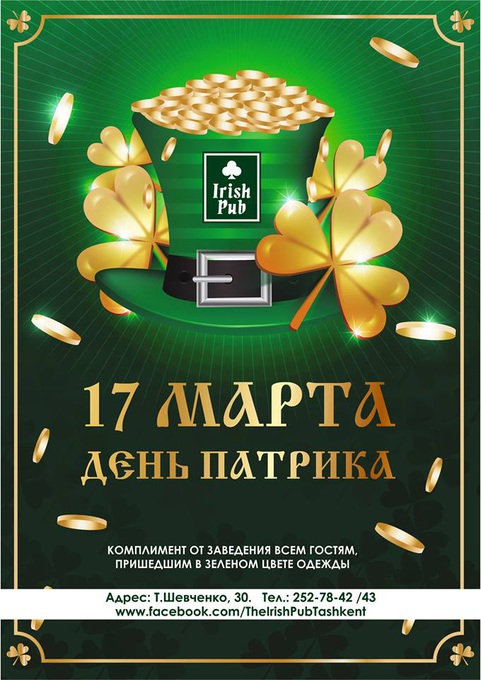 The Irish Pub приглашает на «День Святого Патрика».