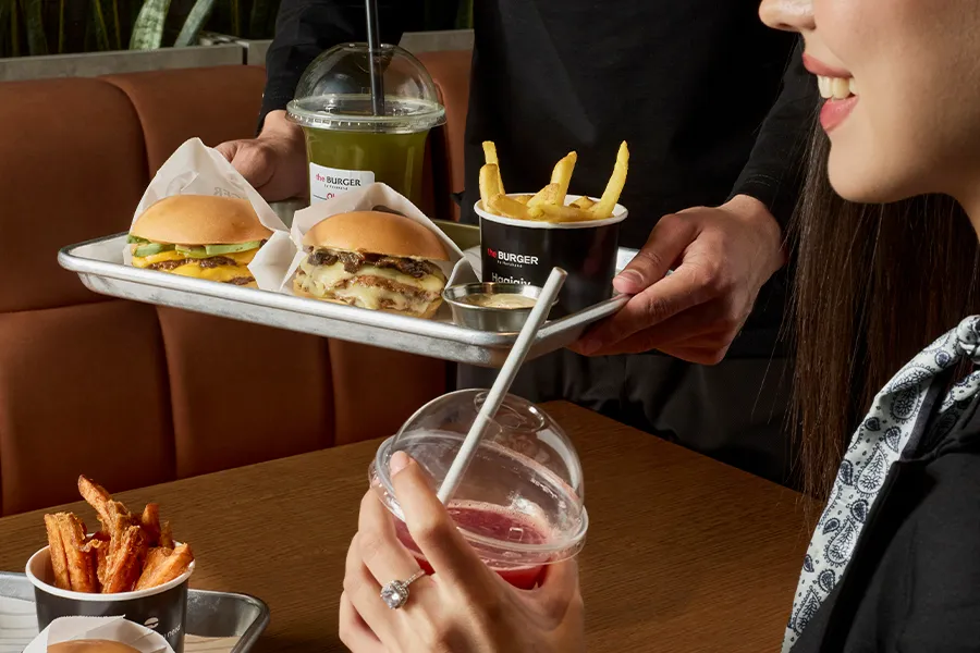 Меню The Burger приятно удивляет. Здесь есть «Трюфель-бургер» с белым сыром и грибами, «Авокадо бургер», «Классик», «Оригинал», пикантный «Халапеньо» и легкий «Латтук-бургер», где булочку заменяют свежие листья салата. К любому бургеру можно заказать гарнир. В меню есть не только классический картофель фри, но и батат фри — хрустящие дольки сладкого картофеля с насыщенным ароматом.