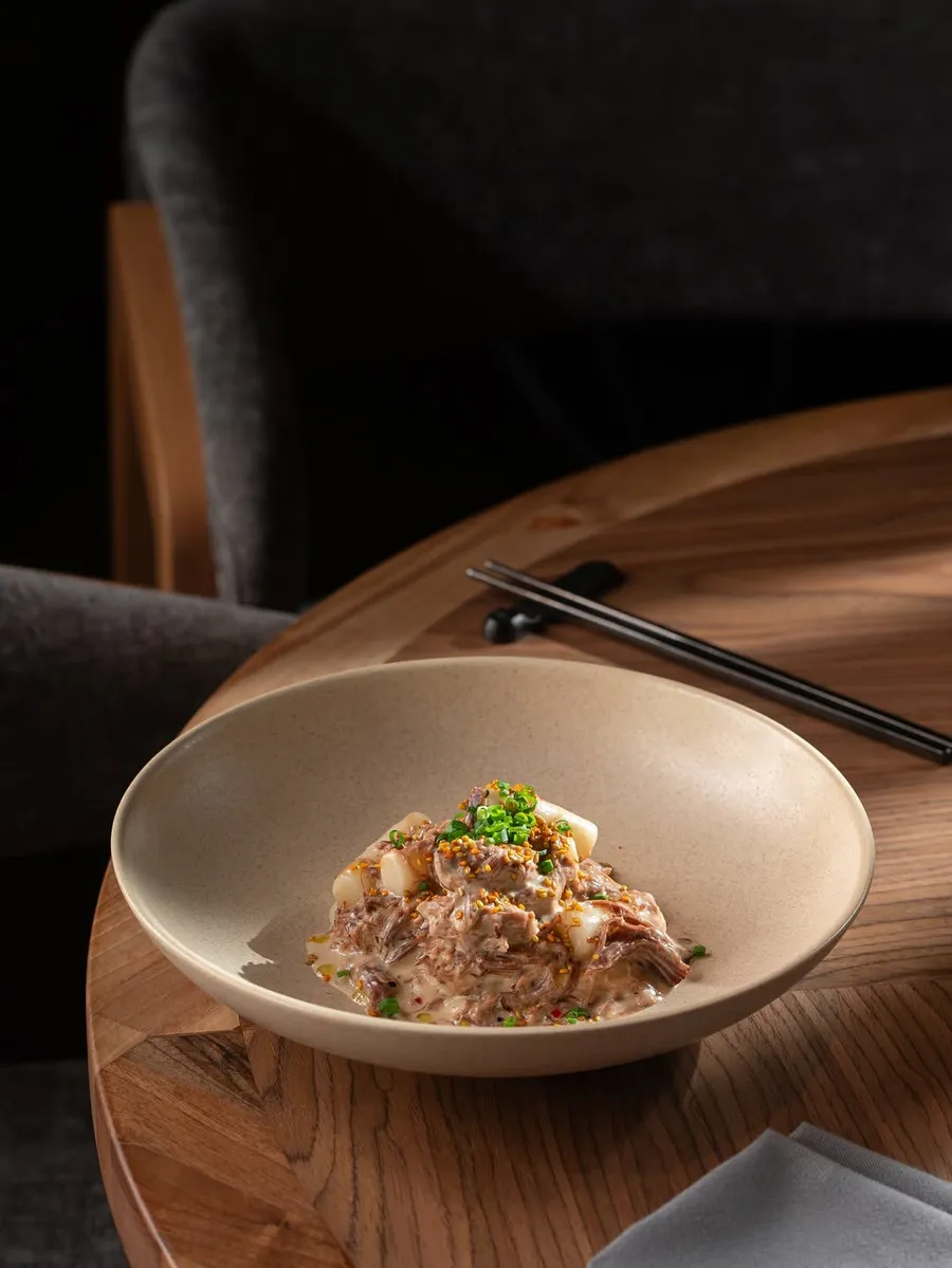 Самым неожиданным блюдом оказались токпокки. Рисовые брусочки стали нежнее и мягче благодаря кокосовому соусу, который добавил сливочности. А томленая говядина придает блюду сытости без лишних ингредиентов.