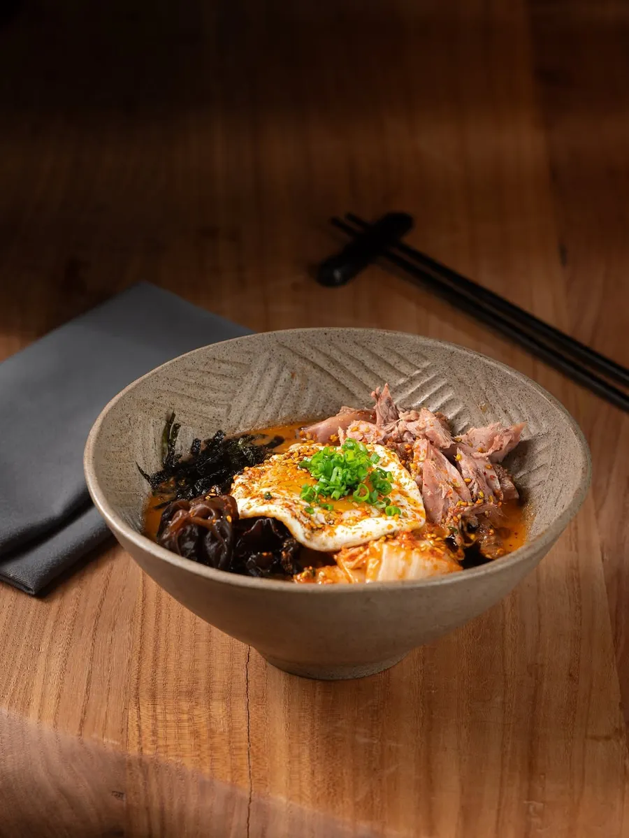 В новом вкусовом сочетании предстал и рамен — с адаптированной остротой и плотным бульоном, который варят на говяжьем, курином и утином мясе. В основе — классическая лапша и томленная куриная грудка, которые дополняют грибы муэр, жареное яйцо и кислинка кимчи.