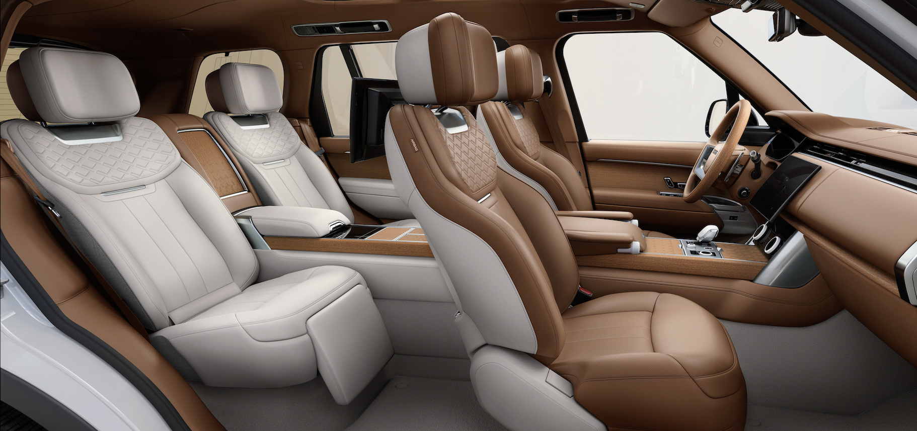 Range Rover предлагается с семи-, шести-, пяти- или четырехместным салоном. Но третий ряд можно заказать только для длиннобазной машины. Объем багажника составляет 312 литров, 1061 литр со сложенным третьим рядом и 818 литров в стандартной версии без третьего ряда.