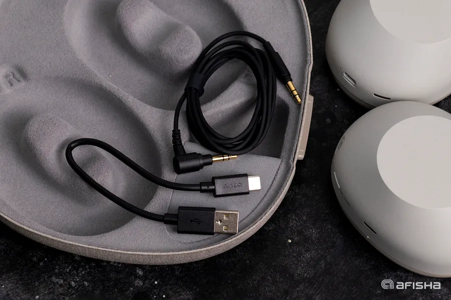 Упаковка скромная, но в ней есть все важное — инструкция, удобный уменьшившийся кейс с новой застежкой, а внутри — сеточка с кабелями (зарядный провод и аудиошнур). Кабель короткий, с Type-C только с одной стороны. В комплекте нет авиa-переходника — странная экономия для флагмана, предназначенного в первую очередь для длительных путешествий.