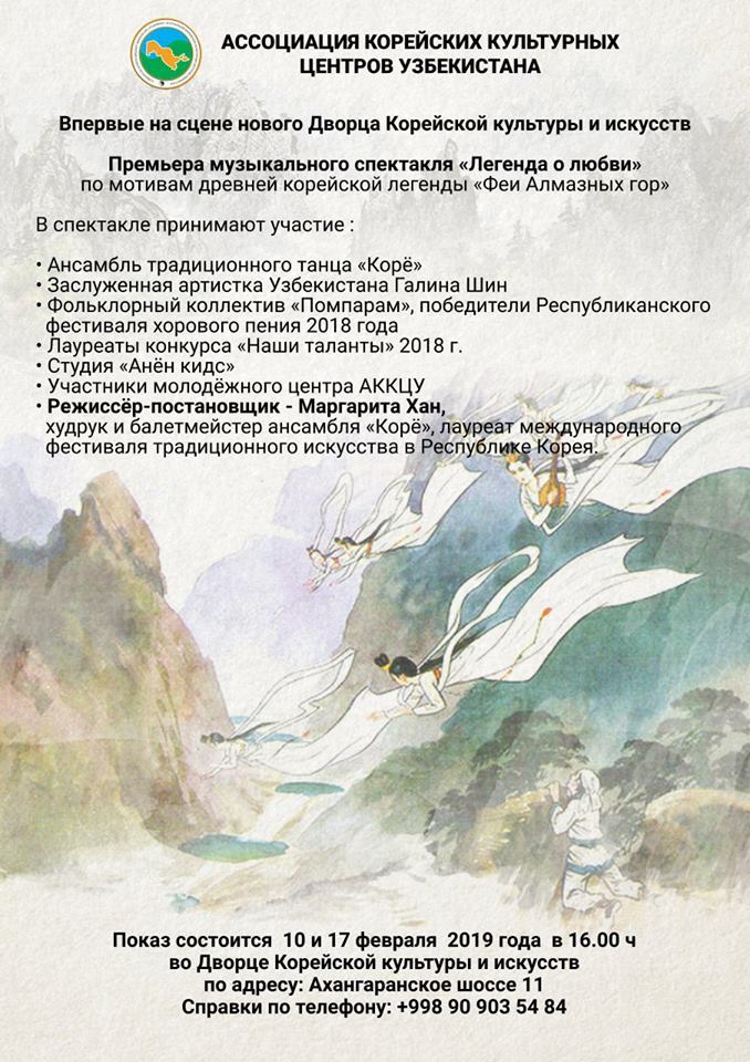 Во Дворце корейской культуры и искусств состоится премьера музыкального спектакля «Легенда о любви» по мотивам древней корейской легенды «Феи Алмазных гор».