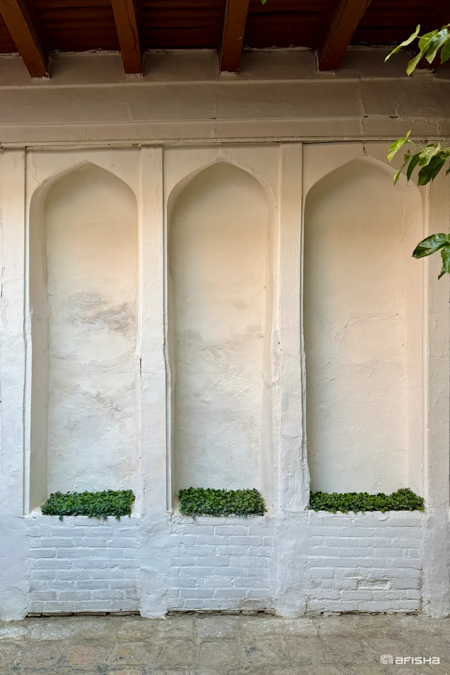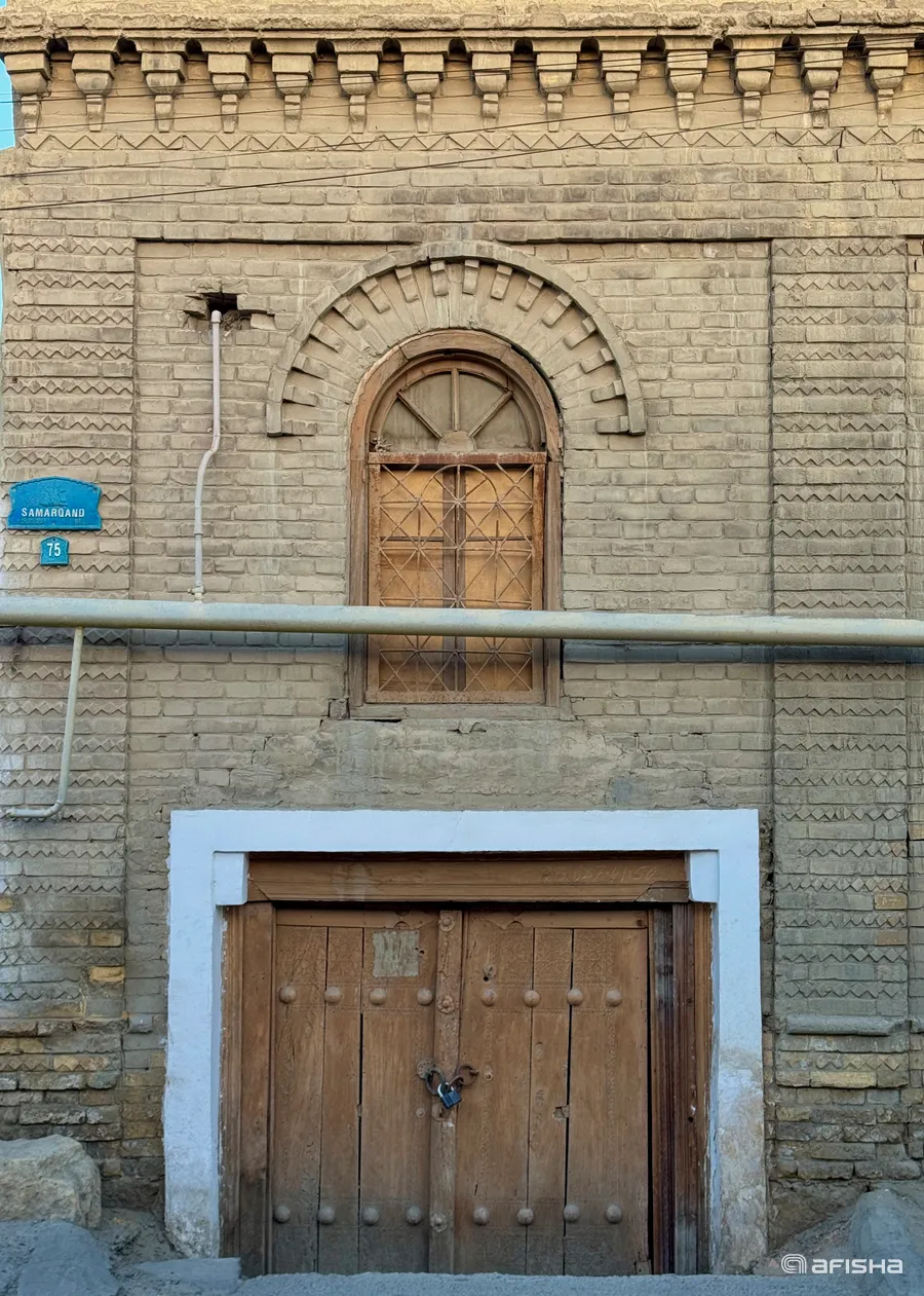 Заглянув за ворота, первым делом вы заметите скамейку, а за ней — узкий проход. Он приведет вас в уютный внутренний дворик с айванами. Здесь бухарские резные колонны и орнаменты на дверях и окнах по-прежнему хранят дыхание ушедшей эпохи.