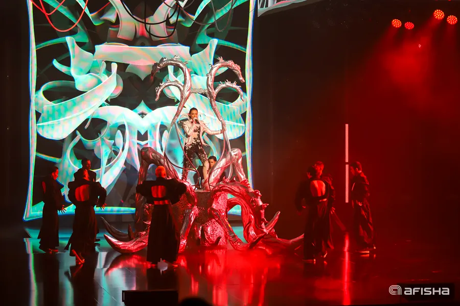 U 2024-yilgi konsertida sahnada ot ustida ko‘ringan bo‘lsa, bu yilgi dasturda esa boshqa installyatsiya ustida paydo bo‘ldi. Mazkur obraz esa zaldagilar tomonidan olqish va qiyqiriqlar bilan qarshi olindi.