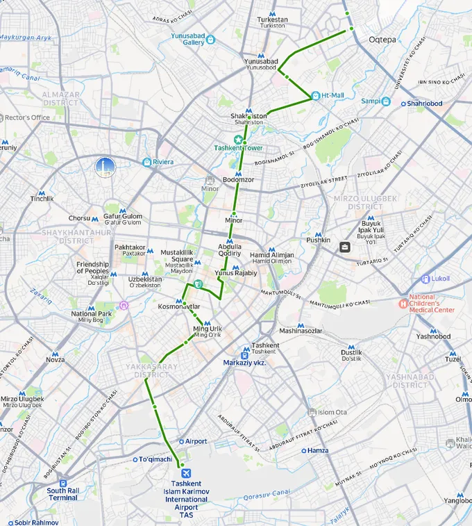 Ma’lumot uchun, “Kechirgin” trekida tilga olingan 67-raqamli avtobus asosan shahar markazida, quyidagi yoʻnalishda harakatlanadi.