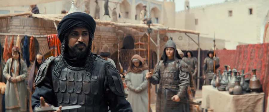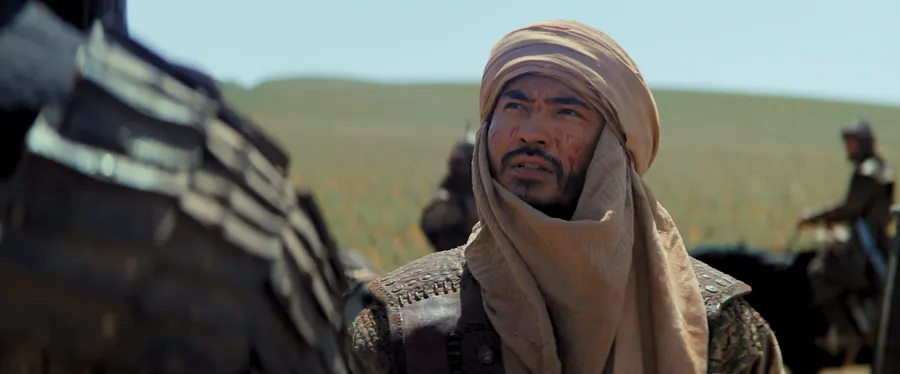 Shuningdek, umumiy kadrlarda jangchilar soni kamdek koʻrinadi. Ammo film sinopsisida tilga olingan “Buyuk ipak yoʻlining goʻzal peyzajlarida” jumlasini aynan shu epizodda his qilish mumkin. Bu kadrlar filmning burilish nuqtasiga aylanadi.