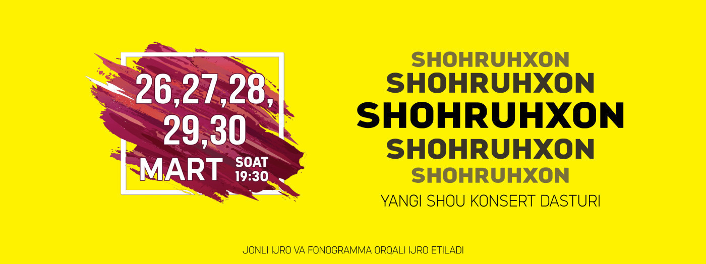 “Xalqlar doʻstligi” saroyida xonanda Shohruhxonning yakkaxon konsert dasturi boʻlib oʻtadi.