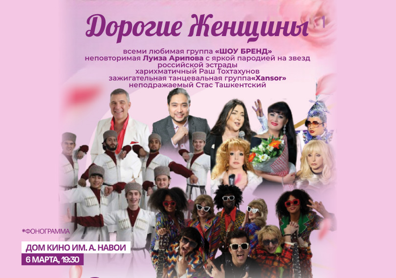 Oʻzbekiston Milliy kino san’ati saroyida 8-mart — “Xalqaro xotin-qizlar” kuni munosabati bilan “Дорогие женщины” gala konserti boʻlib oʻtadi.